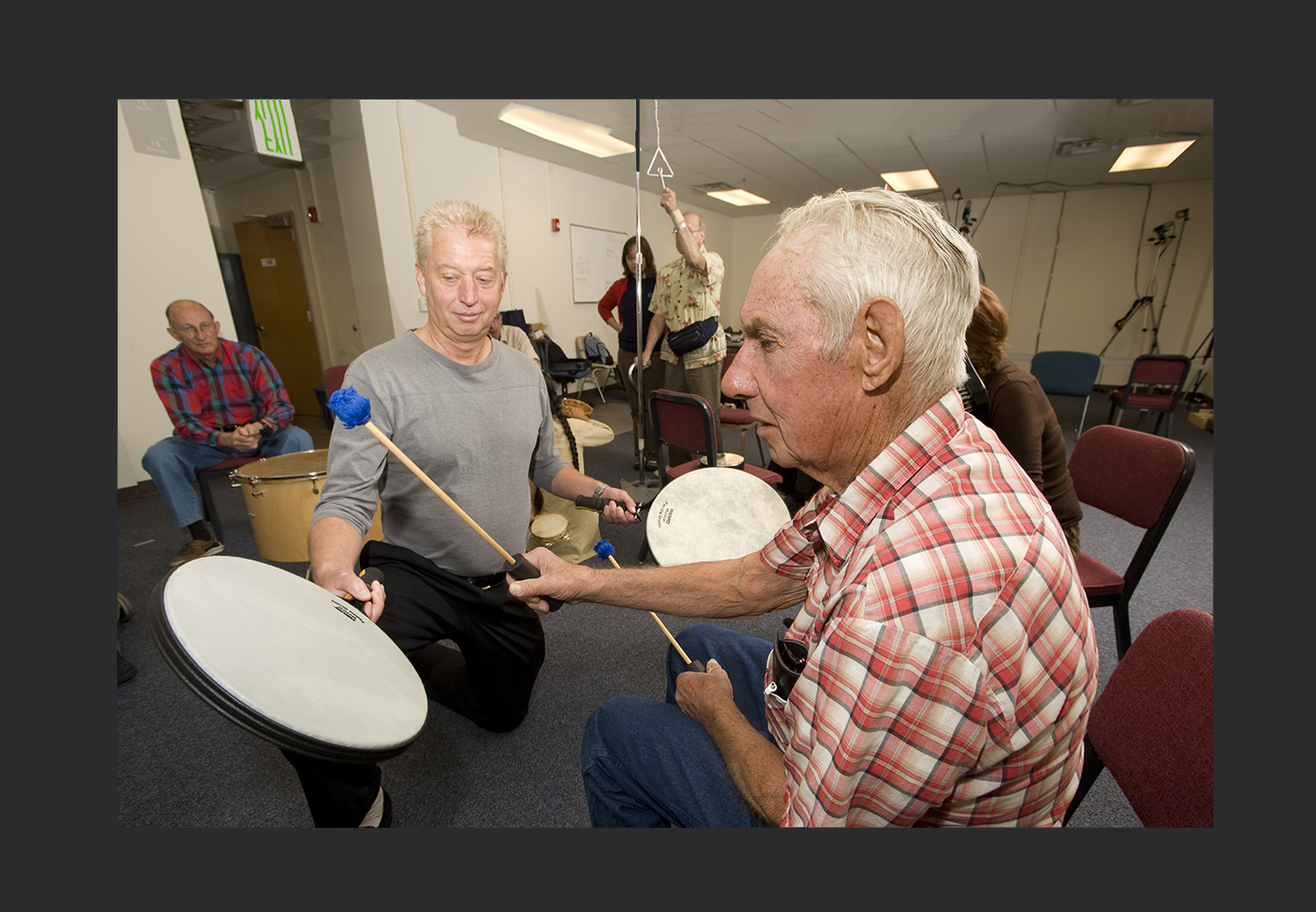 Michael Thaut works with patients in a music therapy session at Center for Biomedical Research in the University Center for the Arts, October 2, 2008.